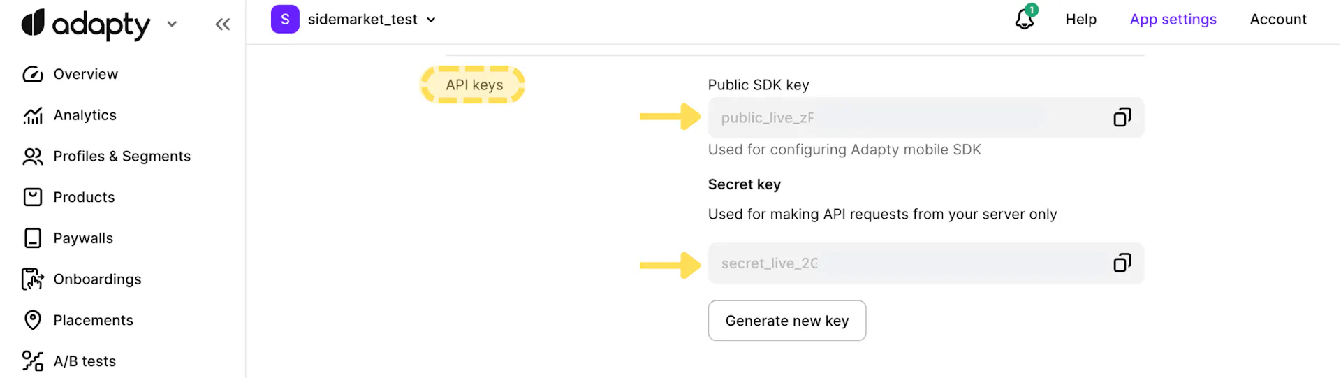 SideMarket only requests read-only access - we never modify your Adapty data.