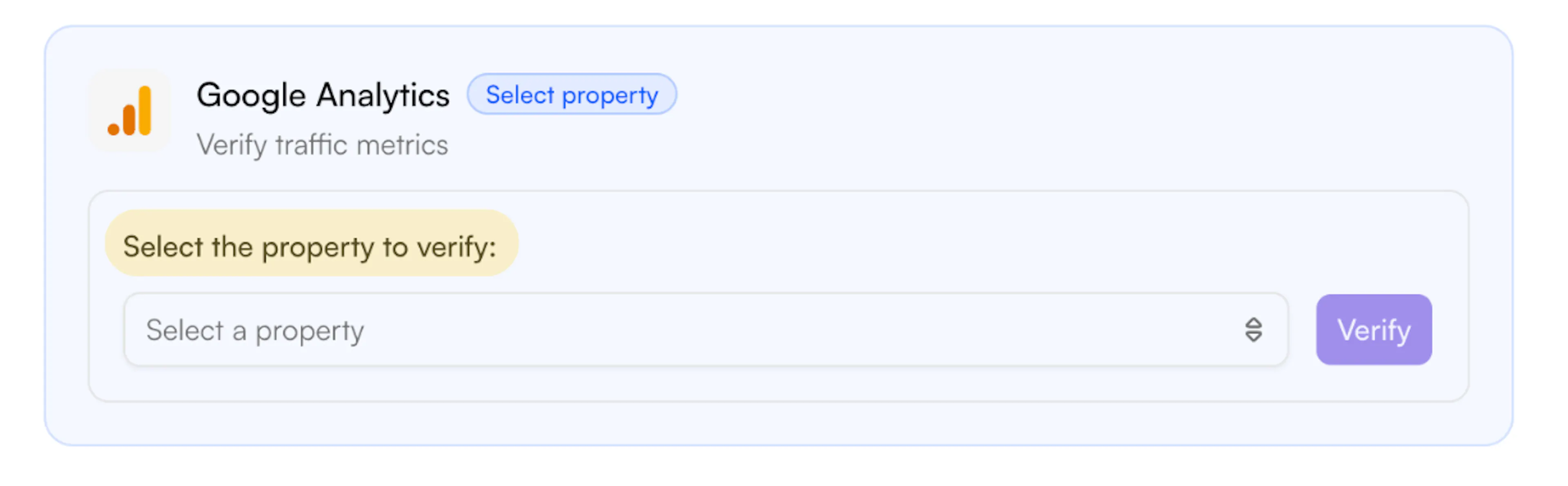 Verify traffic metrics by connecting your Google Analytics account.